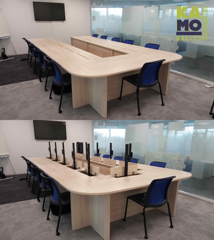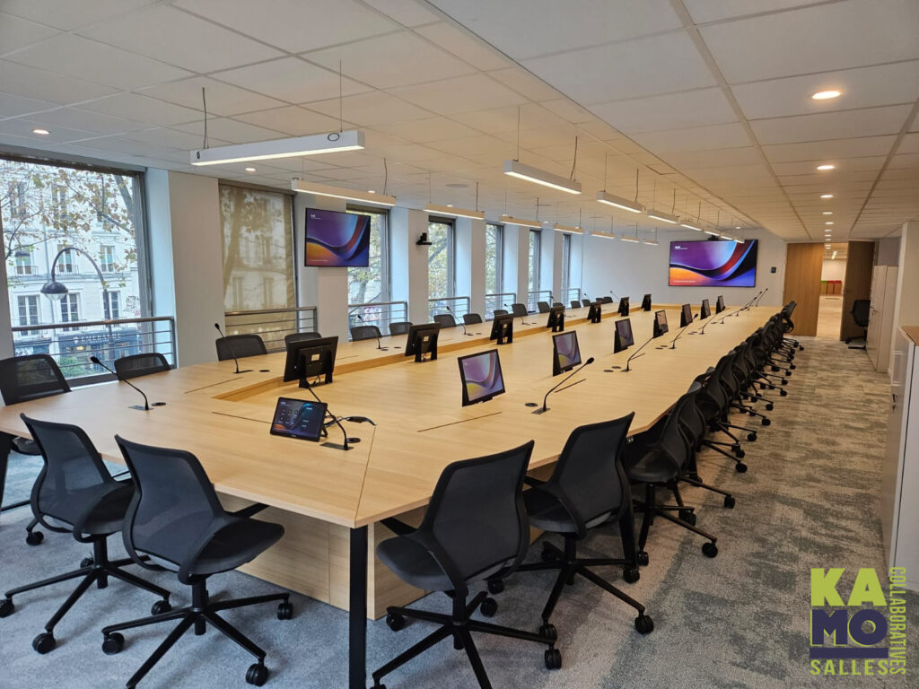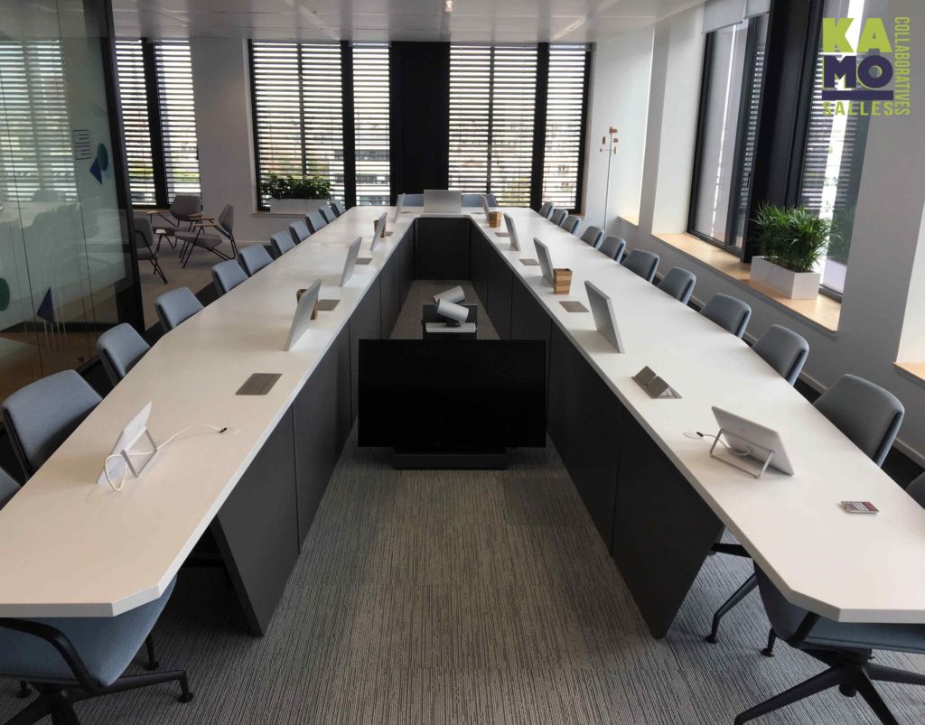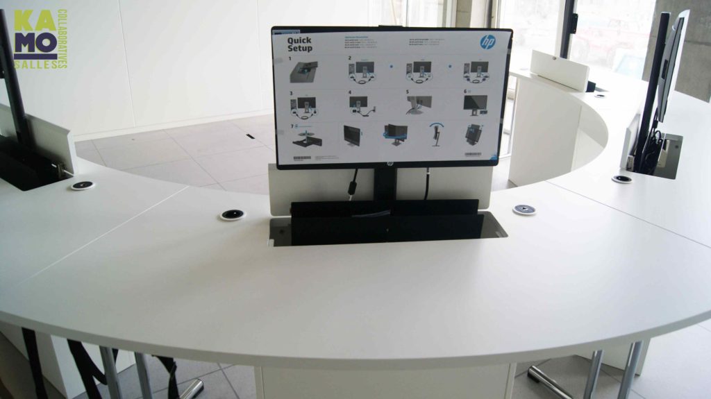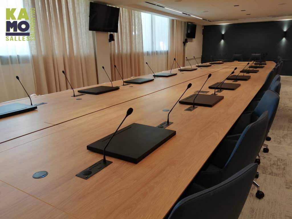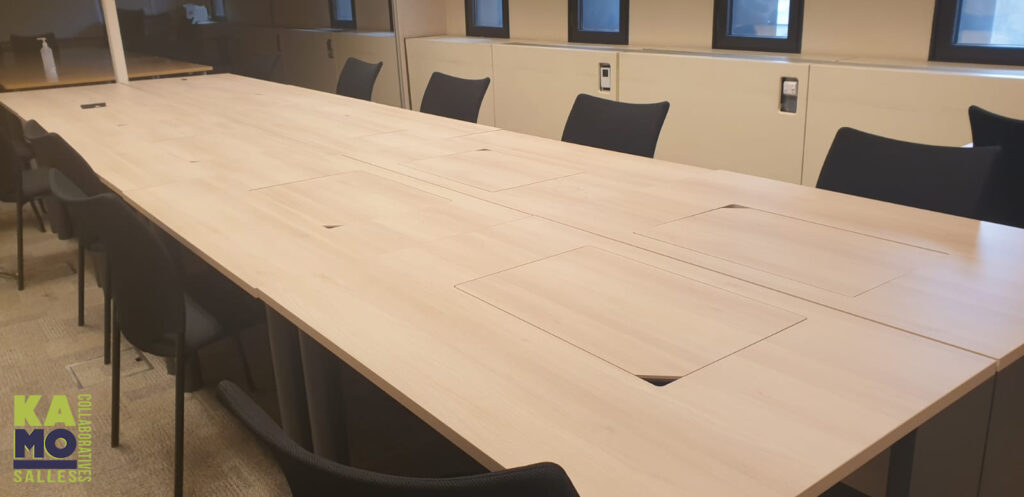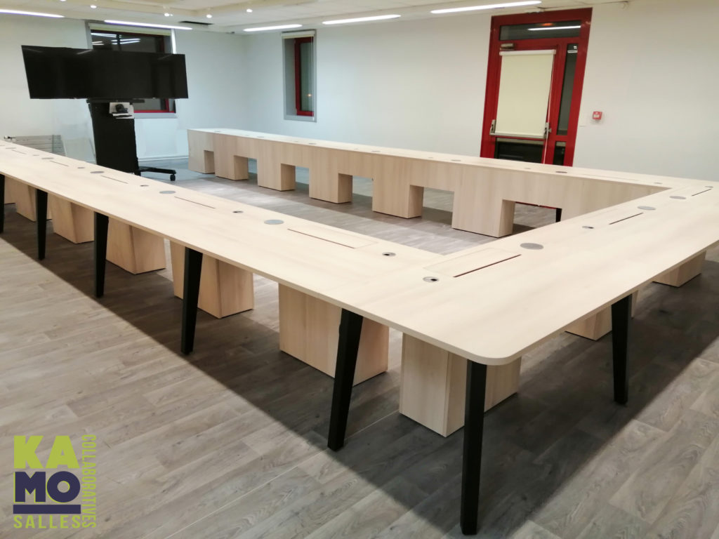 Ces tables au design variable sont conçues pour les contextes de conférence ou de réunion, et les environnements collaboratifs axés sur la technologie.
